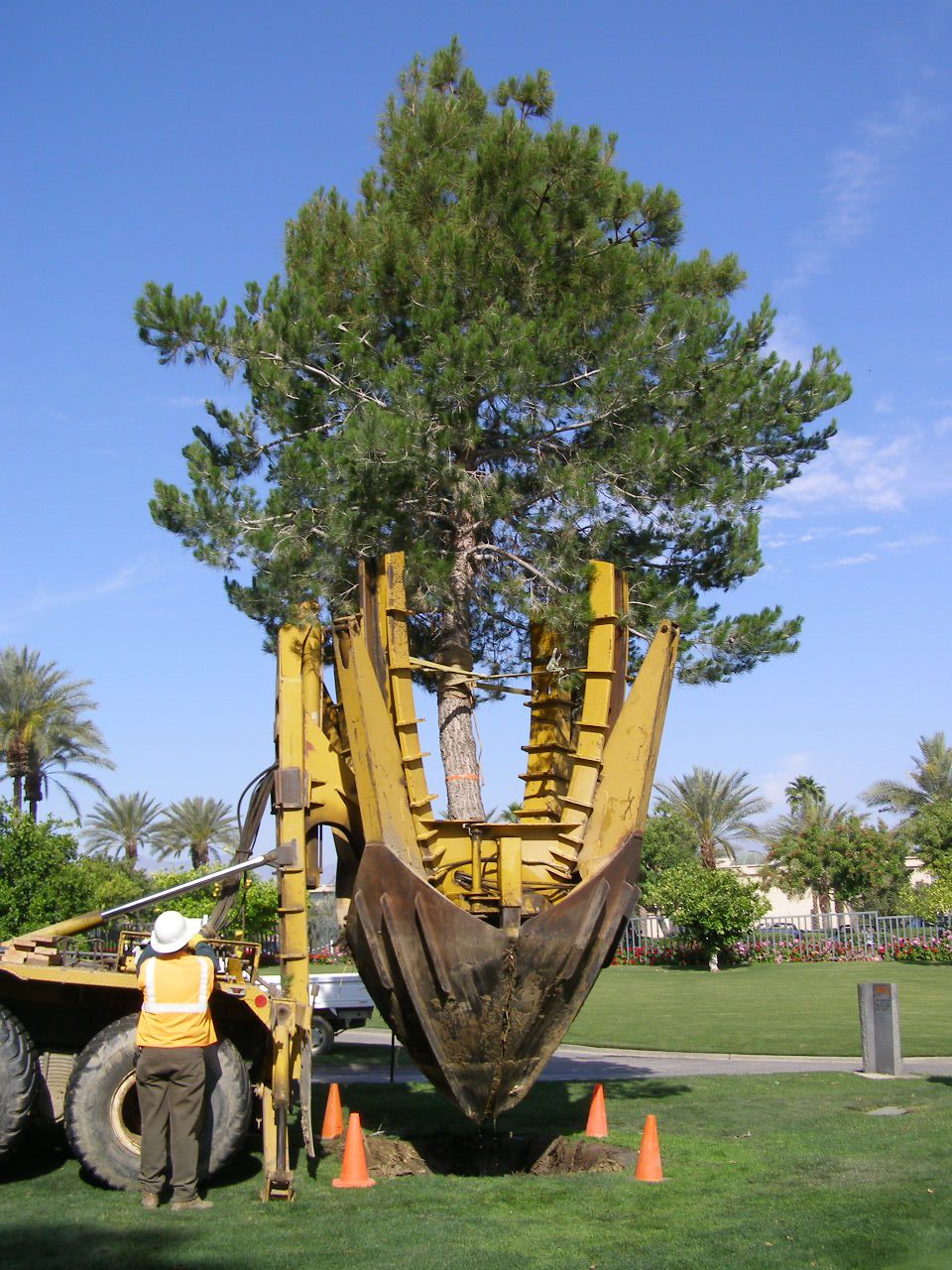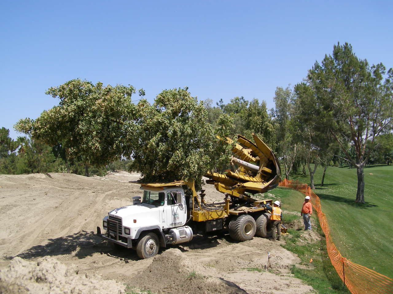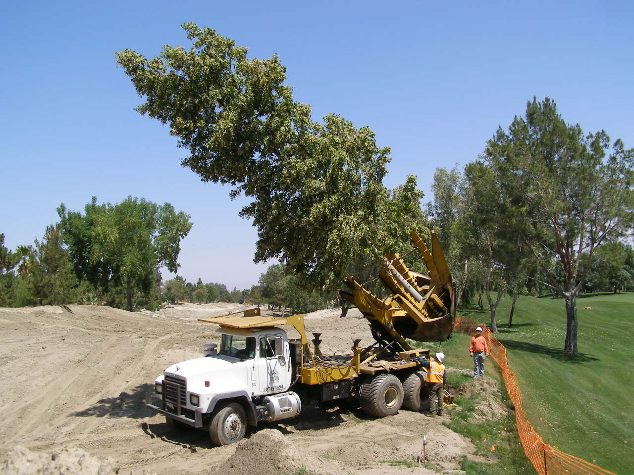 As part of an initiative by the city of Indian Wells, golf course architect Clive Clark and Pinnacle Design were retained to renovate the historic Indian Wells courses. The plan that was developed called for the preservation and transplant of the existing mature trees to new locations on the reconfigured holes. Environmental Design was called in to transplant over 50 trees using both our hydraulic spade and tree boxing capabilities.