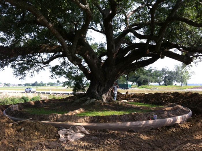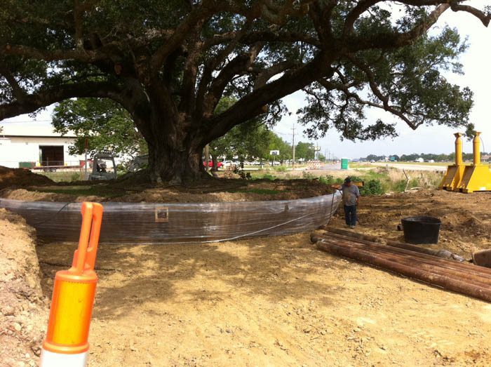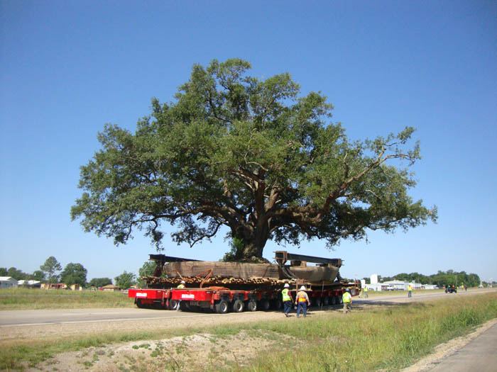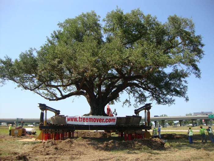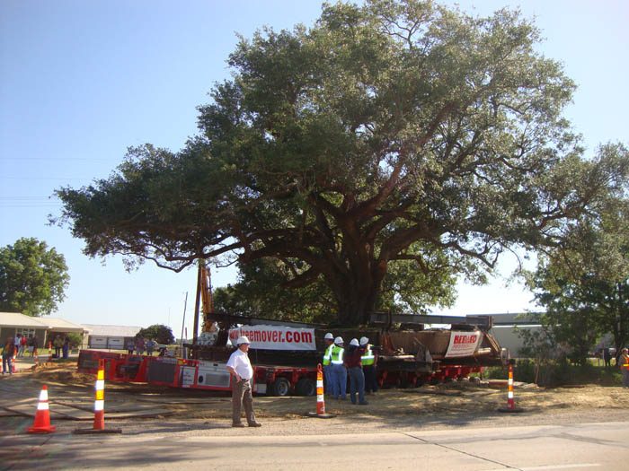 Early in 2011, EDI was contacted by the Louisiana DOT. The dilemma on their hands was the completion of service roads for Hwy 90 in New Iberia, Louisiana. The actual service road was complete in both directions leading up to a 90″ diameter live oak, named “Mr. Al.” The tree had been named by the granddaughter of the individual who had cared for the tree as a child, and was a landmark in the community. Eventually, the State of Louisiana agreed to fund a massive transplant, relocating this tree 2 miles north into a green space created by an interchange. 5 weeks later the 850,000 lb tree was on a specialized trailer headed north with police escorts, shutting down the highway for 2 hours. Today, “Mr. Al” is thriving and should never encounter highway construction again!