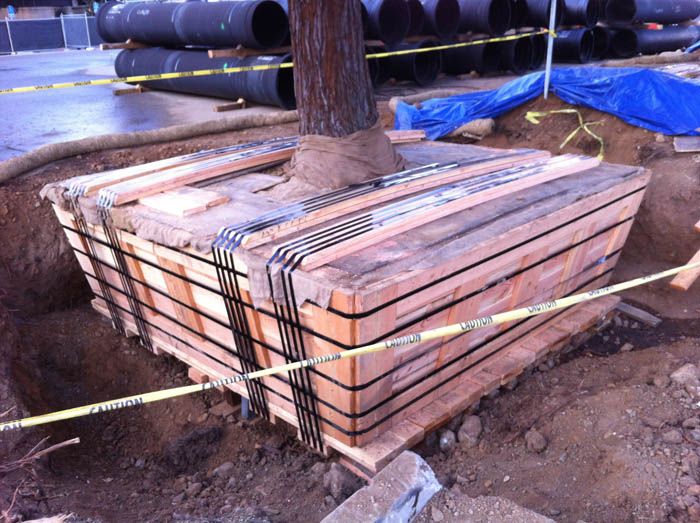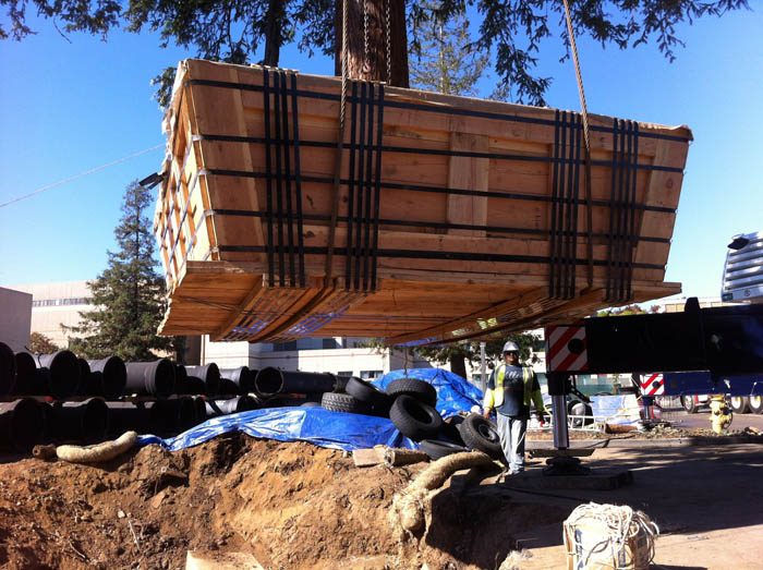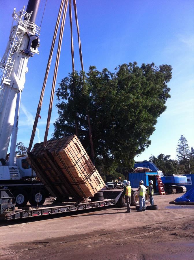 As part of Project Renewal for Stanford University Medical Center in 2011, EDI started a 3-year project to relocate over 2 dozen trees for the construction site to a holding yard, and then back to final locations for the Lucile Packard Children’s Hospital. A 250,000lb Heritage tree was included in the relocation. https://www.sumcrenewal.org/construction-timeline/